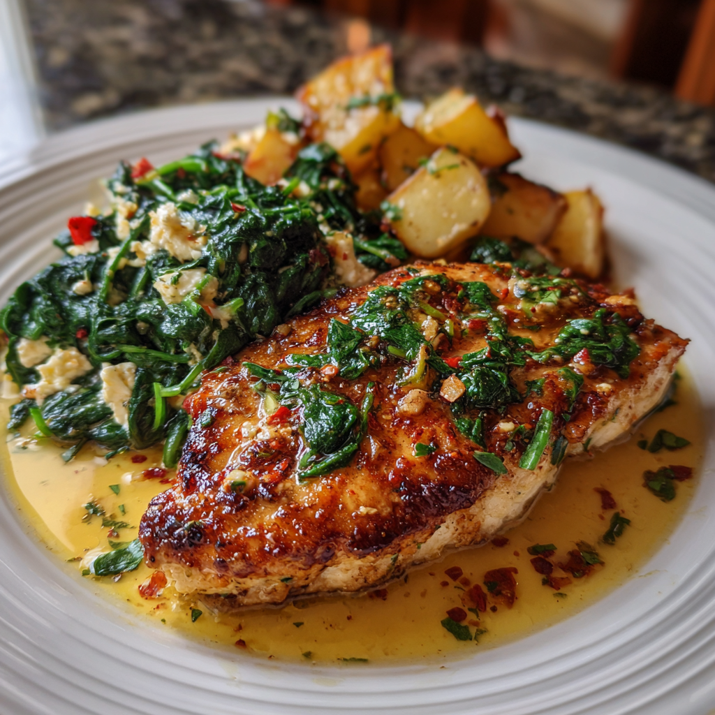 Baked Feta Chicken with Spinach is one of those recipes that feels wholesome, comforting, and flavorful all at once. I started making this dish when I wanted a lighter dinner that still felt satisfying and rich in flavor. The combination of juicy baked chicken, creamy feta cheese, and tender spinach creates a meal that is both nourishing and elegant without being complicated. As the chicken bakes, the feta softens and becomes beautifully creamy, mingling with the juices and seasoning to form a natural sauce. The spinach wilts gently, adding freshness and balance to the dish. What I love most about this recipe is how effortless it is. Everything bakes together in one dish, making it perfect for busy weeknights or relaxed family dinners. If you enjoy Mediterranean flavors and simple, oven-baked meals, this recipe is a reliable and delicious choice.