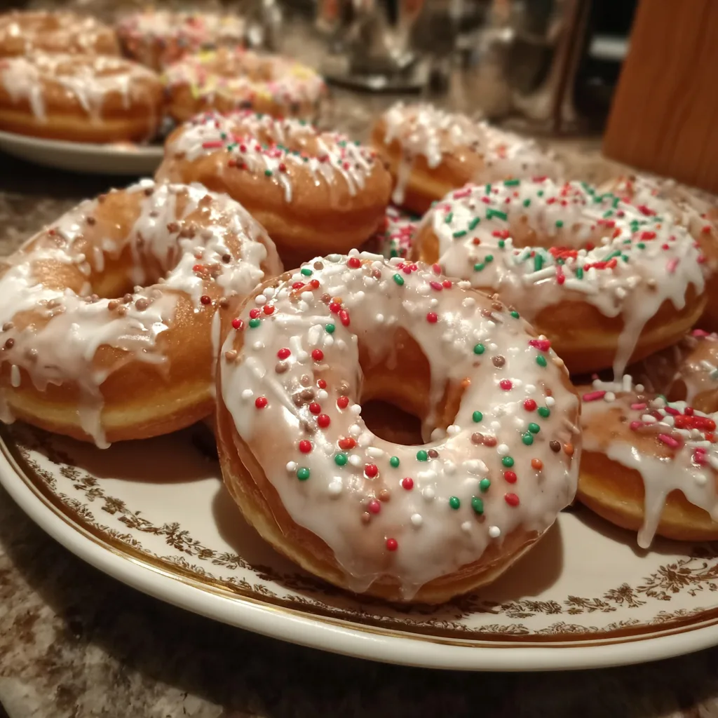 - Dip cooled donuts into glaze and add sprinkles if desired.