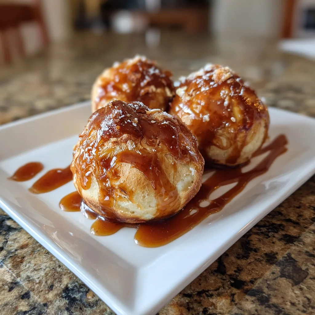 Irresistible Caramel Apple Pie Bombs featuring tender apple pie filling wrapped in buttery dough and baked until golden, with a gooey caramel center in every bite.