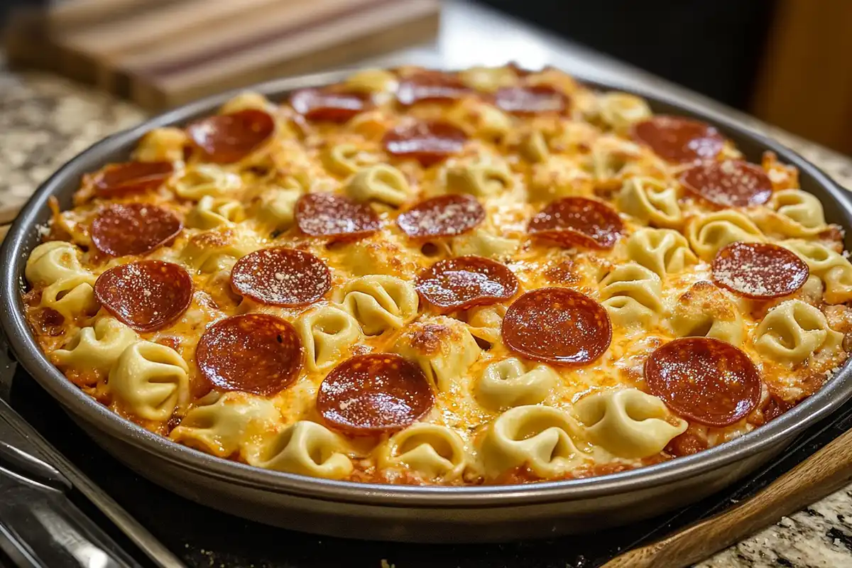 When pizza meets pasta, you get the ultimate comfort food mash-up — and cheese tortellini pepperoni pizza casserole is exactly that. This dish brings the best of both worlds into one bubbly, cheesy, pepperoni-loaded bake that’s perfect for family dinners, potlucks, or even picky eaters who love both pizza and pasta.