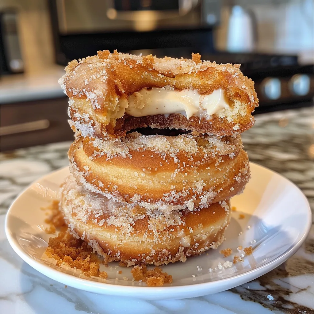 These Churro Cheesecake Donut Cookies combine the warm cinnamon-sugar flavor of churros with creamy cheesecake filling and the fun shape of donuts. Soft, buttery cookie dough encases a rich cheesecake center and is dusted in a sweet cinnamon sugar coating for an irresistible treat.