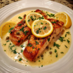 Creamy Lemon Garlic Salmon Piccata is a refined yet approachable dish that feels restaurant-worthy while remaining simple enough for home cooking. Tender salmon fillets are gently cooked and finished in a silky lemon-garlic sauce with a subtle creaminess that balances the bright citrus notes beautifully. I enjoy this recipe because it delivers bold flavor without heaviness, making it suitable for both weeknight dinners and special occasions. The lemon keeps the dish fresh, the garlic adds depth, and the creamy sauce ties everything together without overpowering the salmon. I have prepared this recipe when I wanted something impressive but not time-consuming, and it consistently delivers satisfying results. Served with pasta, rice, or vegetables, this salmon piccata offers a comforting yet elegant meal that feels thoughtfully prepared.