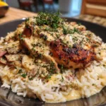 Creamy smothered chicken and rice is the ultimate comfort food, combining tender, juicy chicken with a rich, savory cream sauce served over fluffy rice. This dish is hearty enough to be the star of dinner yet simple enough for a weeknight meal. The creamy sauce, flavored with garlic, onions, and herbs, coats the chicken beautifully and seeps into the rice, making every bite satisfying and flavorful. I tried this recipe with a sprinkle of fresh parsley on top, and it added the perfect brightness to balance the richness. What makes this dish special is its versatility—you can use chicken thighs or breasts, long-grain rice, or even swap in brown rice for extra nutrition. It’s cozy, family-friendly, and tastes like a hug in a bowl. Whether you’re cooking for a crowd or making a quiet dinner for two, this creamy smothered chicken and rice is sure to please.
