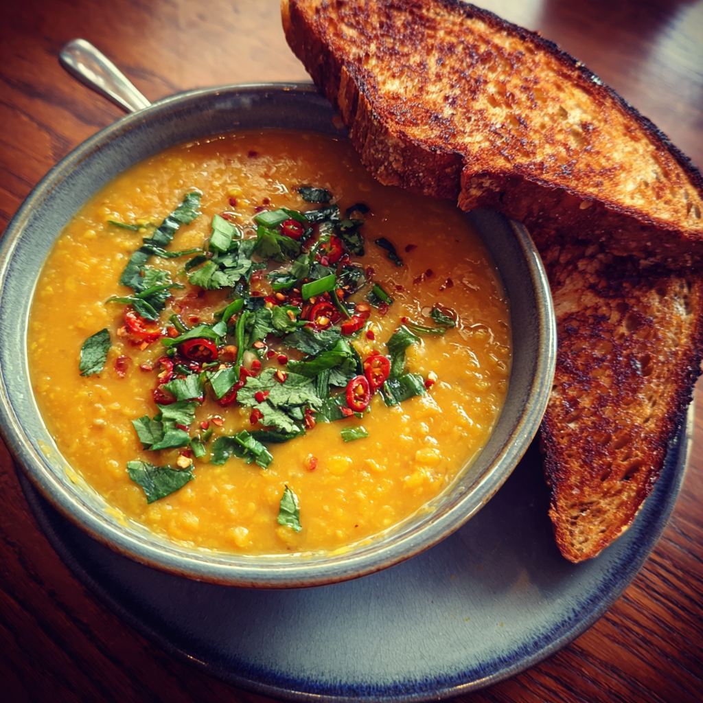 Curried Lentil, Tomato & Coconut Soup is one of those recipes that feels deeply comforting while still being wholesome and nourishing. I first made this soup on a chilly evening when I wanted something warming, filling, and packed with flavor without relying on meat or heavy ingredients. The combination of earthy lentils, tangy tomatoes, and creamy coconut milk creates a beautifully balanced base, while curry spices add warmth and depth without overwhelming the dish. What I love most about this soup is how satisfying it feels while remaining light and plant-based. It simmers gently, filling the kitchen with inviting aromas, and tastes even better the next day as the flavors continue to develop. Whether you enjoy it as a cozy dinner, a make-ahead lunch, or a comforting meal during cooler months, this curried lentil soup is a reliable and delicious staple.