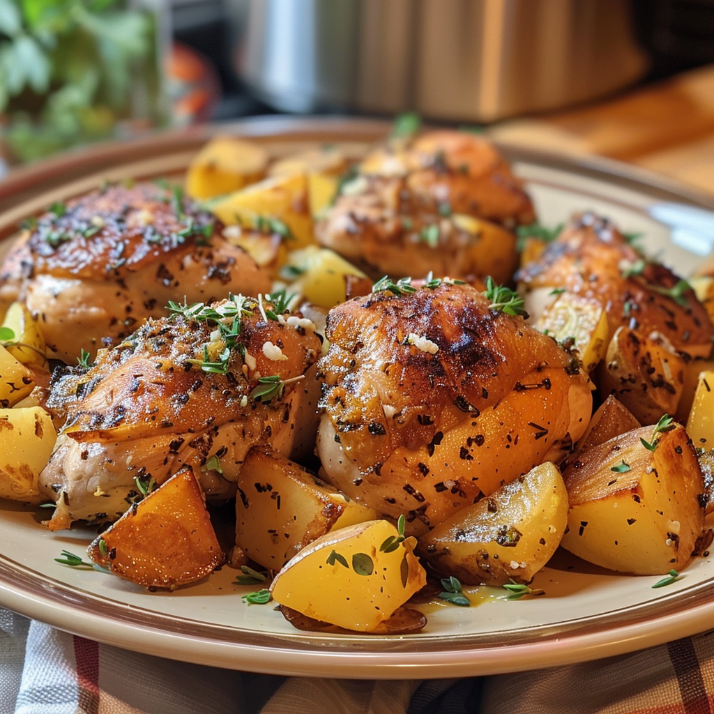- Cook: Cover and cook on low for 6–7 hours or on high for 3–4 hours, until the chicken is tender and the potatoes are cooked through.