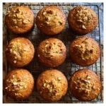 The texture is soft and tender, with a slightly hearty crumb thanks to whole wheat flour. The nuts add a pleasant crunch and healthy fats, making the muffins more filling and satisfying. They are ideal for meal prep, as they store well and reheat beautifully.