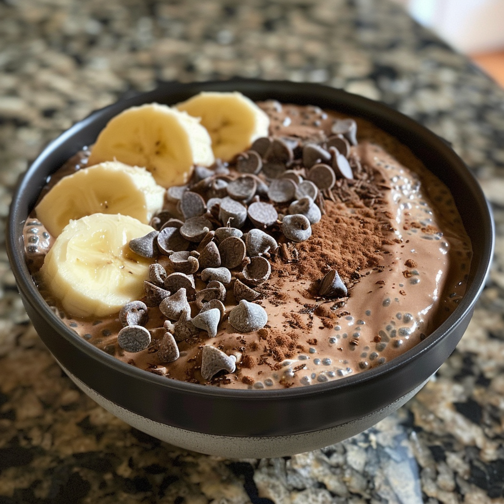 A rich and creamy chocolate chia pudding packed with protein, perfect for a healthy breakfast, snack, or dessert.