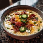 Jalapeño Popper Soup is a rich, creamy, and spicy comfort dish inspired by the classic appetizer. Made with smoky bacon, roasted jalapeños, cream cheese, and cheddar, this soup delivers a perfect balance of heat, creaminess, and bold flavor — ideal for cozy nights or game day gatherings.