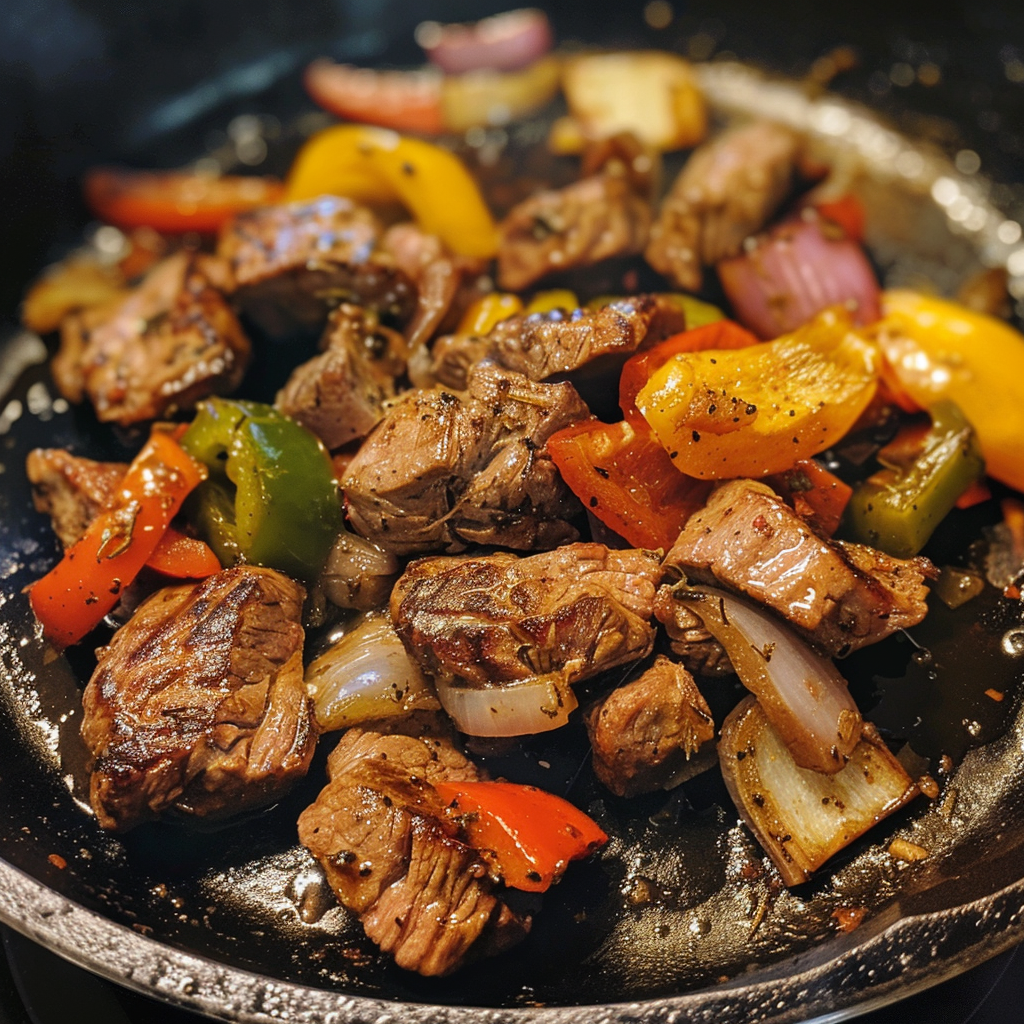 - Cook for 2–3 more minutes, letting the sauce thicken and cling to the beef and peppers.