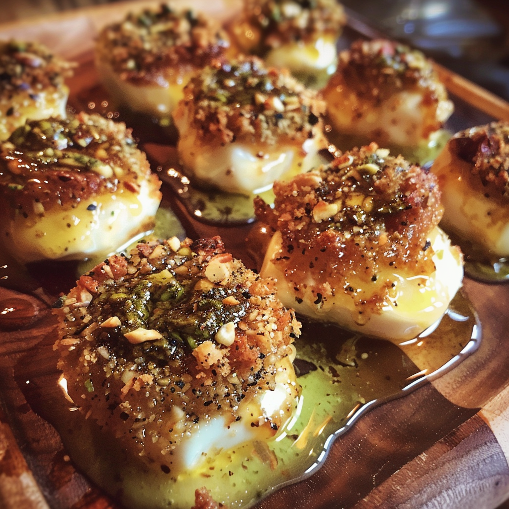 Pistachio-Crusted Brie Bites with Fig Honey Glaze are elegant, bite-sized appetizers that combine creamy Brie cheese with crunchy pistachios and a luscious fig honey drizzle. These easy yet sophisticated bites are perfect for holiday parties, wine nights, or any gathering that calls for a touch of gourmet flair.