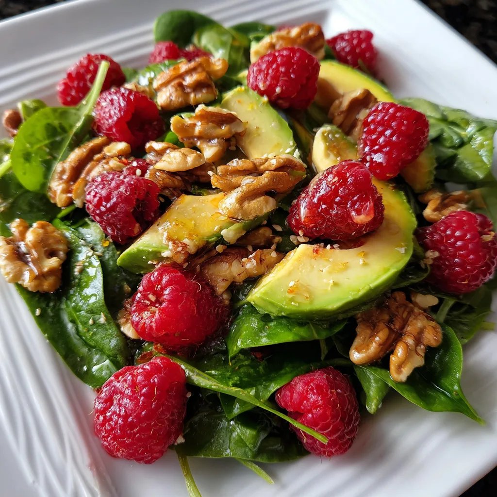 Raspberry-Spinach Salad with Avocado & Walnuts – Fresh, Vibrant, and Naturally Sweet