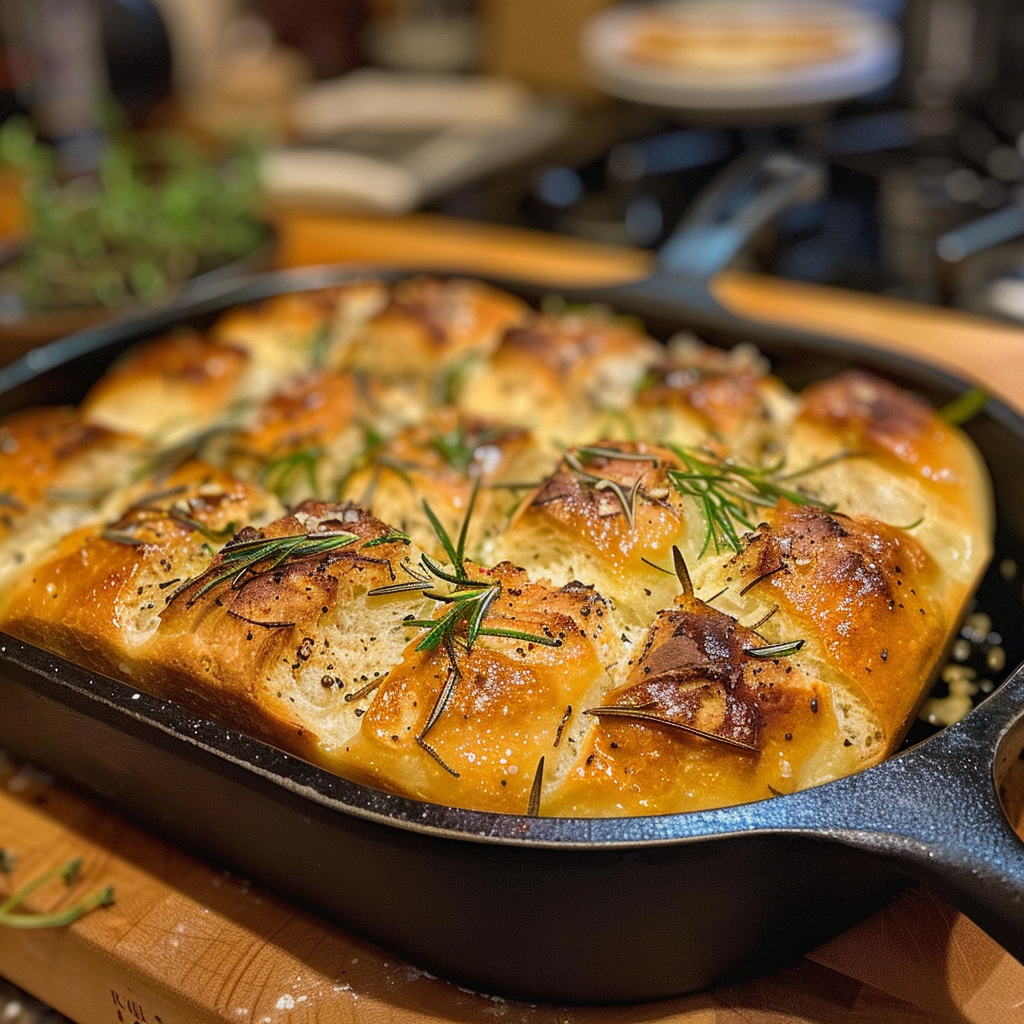 Step-by-Step Rustic Garlic Rosemary Skillet Bread Recipe