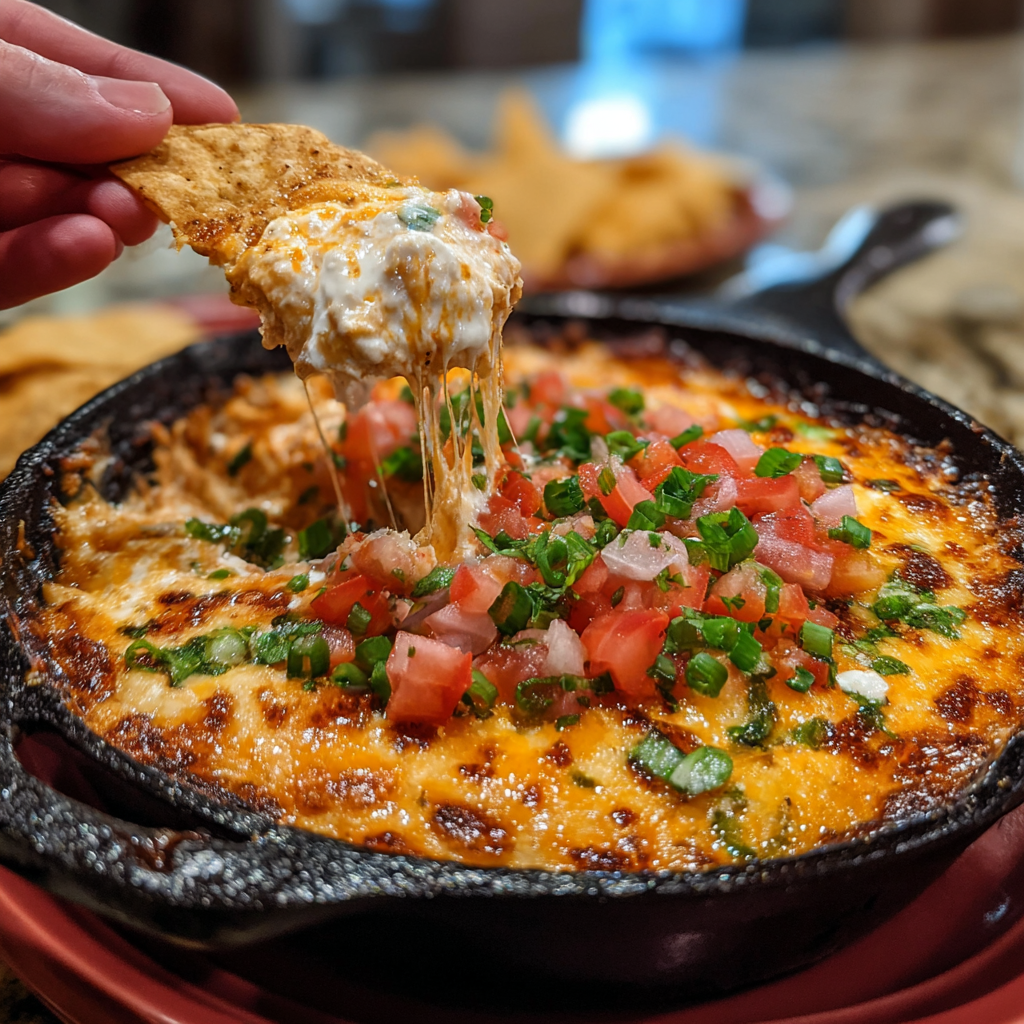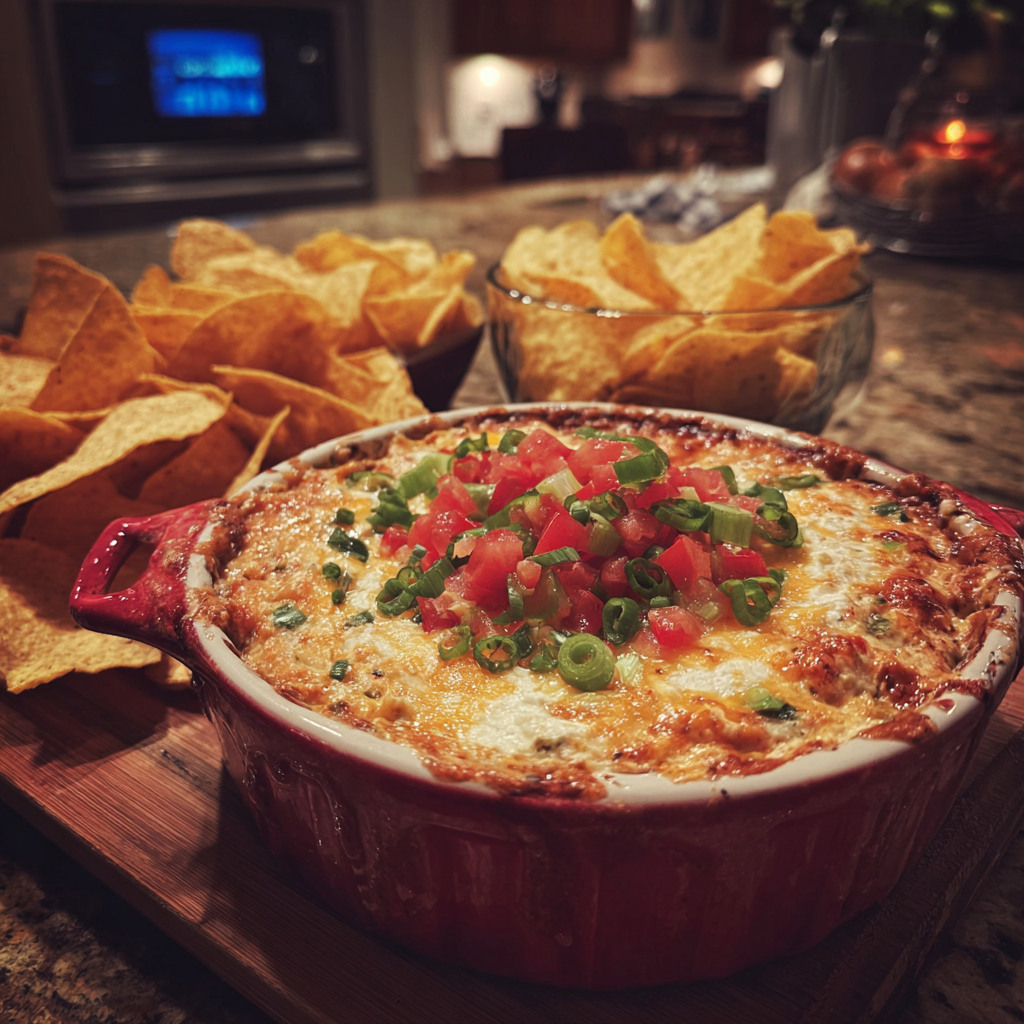 - Serve warm with tortilla chips, crackers, or fresh vegetables.