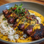 Steak Queso Rice is a rich and creamy one-pan meal that combines juicy, tender steak bites with fluffy rice coated in a smooth queso cheese sauce. Infused with Tex-Mex flavors, this easy comfort dish is perfect for busy weeknights or indulgent weekends.