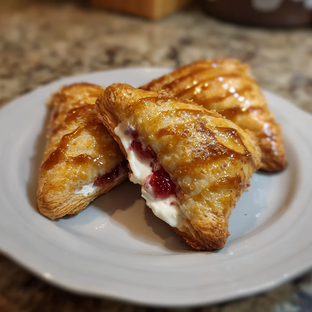 This recipe combines flaky pastry with creamy cheesecake and fruity sweetness in a simple, approachable way. The turnovers bake quickly, require minimal prep, and deliver a bakery-style result at home. They are easy to serve, store well, and feel special without complicated steps.
