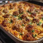 Swedish Meatball Pasta Bake is a cozy, family-style casserole that combines juicy homemade meatballs, tender pasta, and creamy Swedish-style sauce baked together under a blanket of melted cheese. It’s hearty, comforting, and perfect for weeknight dinners or potlucks.
