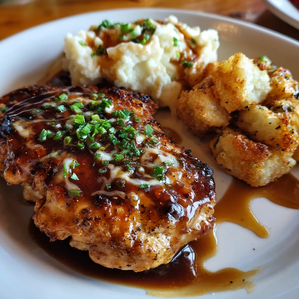 Juicy grilled chicken breasts smothered with sautéed mushrooms, onions, and melted Monterey Jack cheese, inspired by the famous Texas Roadhouse favorite. A hearty and flavorful main dish perfect for family dinners.