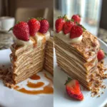 This Vanilla & Speculoos Crêpe Cake is the definition of elegant indulgence. Imagine layers upon layers of soft, delicate crêpes stacked high with creamy vanilla filling and rich Speculoos spread—each bite melting in your mouth with a perfect balance of sweetness and spice. The smooth cream contrasts beautifully with the warm, caramelized flavor of Speculoos, creating a dessert that’s as stunning as it is delicious. The first time I made it, I was amazed at how simple it was to assemble, yet how impressive it looked on the table. Whether served at a dinner party, afternoon tea, or as a special weekend treat, this cake is guaranteed to turn heads.